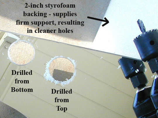 Obtener algunos poliestireno grueso, disponible en tiendas de Artes y oficios - o si es necesario te puede usar madera y sólo mantener perforación abajo en el mismo agujero para hacer la vida más fácil. También necesita un 1-1/8" taladro bit: son difíciles de encontrar - lo mejor es invertir en un kit y asegúrese de que incluye ese tamaño.