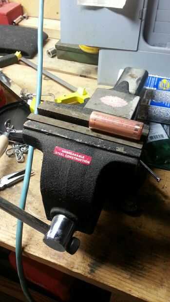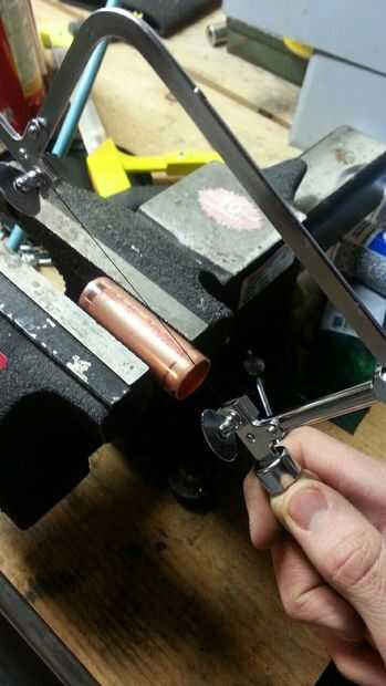 Comienza por cortar una longitud de tubos con el cortatubos (si no tienes un cortador de tubos podría utilizar Sierra de joyero, pero es mucho más fácil utilizar el cortador de tubos). Corté un trozo que era cerca de 3 pulgadas, y que parecía funcionar bien con el tamaño de la Sierra de joyero. Garantizar que 3 pulgadas la longitud del tubo en el tornillo luego cortar un lado con Sierra de joyero. Sólo marca una línea recta sobre el tubo y siguió. I cortar la longitud del tubo de hasta la mitad y lo voltea y cortar a la segunda mitad desde el otro extremo por lo que era más fácil.