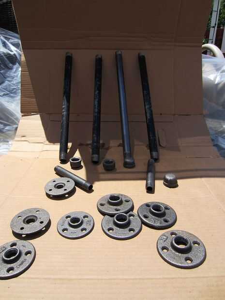Tubería industrial. Puede conseguirlo en cualquier ferretería, en diferentes tamaños. Es una gran opción barata para constructores inexpertos como yo. Un detalle tendrá que cuidar es limpieza el aceite de las tuberías, vienen de serie bastante sucio y aceitoso. Sólo utiliza un estropajo de alambre y detergente, fue bastante fácil... y muy necesario.