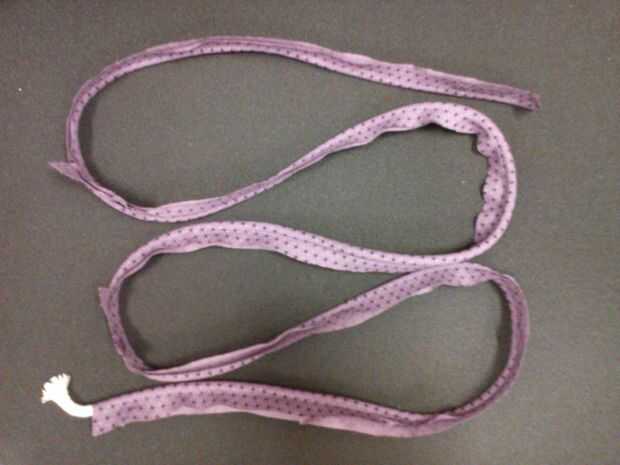 Hay que ir! He hecho tubos de viejas camisas de algodón tejido. Una longitud de tendedero hará un poco de tubería.