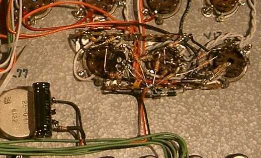 El condensador blanco visto en la esquina superior derecha de la primera foto es la tapa del filtro C20 que tuvo que ser aislado de la tierra. Envolver en papel grueso (más tarjetas de Navidad) y poner en un clip lo hizo.