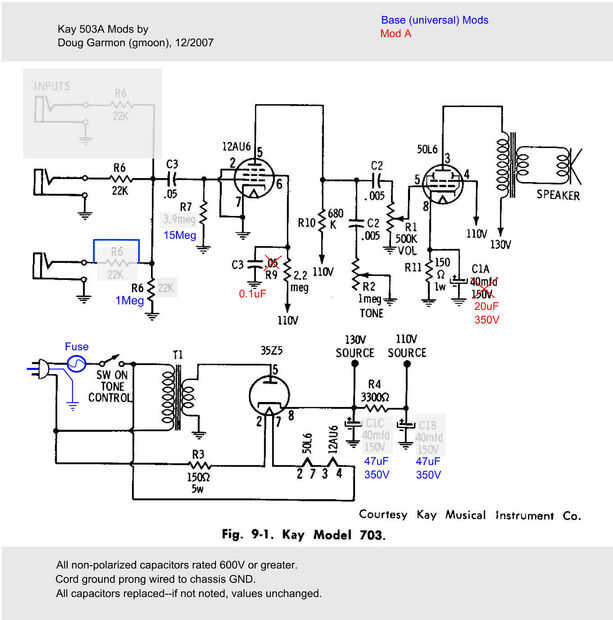 --Utilizar una tapa de derivación de cátodo de 20 uF para la etapa de potencia amp. Esto cambió la respuesta a los más agudos y junto con las alteraciones de preamplificador ayuda a forma el sonido.