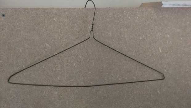 Use los cortadores de alambre para cortar el extremo de la percha y la suspensión de la reforma en forma circular. No necesita ser exacta. Sin embargo es útil para asegurarse de que la forma circular encajará en cualquier contenedor, como un cubo o una bandeja plana, que se llevará a cabo la mezcla de la burbuja.
