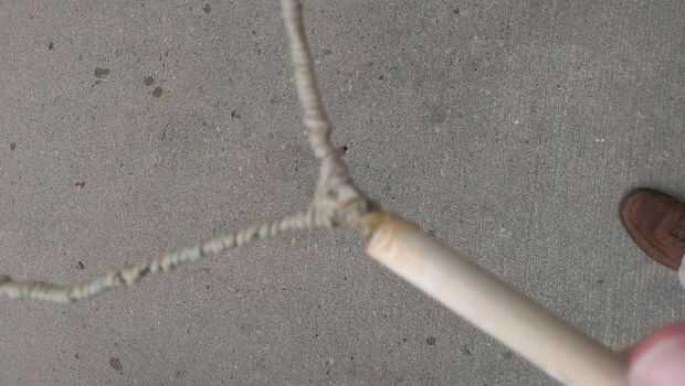 Una vez que ha fijado el epoxi, es momento de comenzar a envolver el tubo con la cadena. La cadena absorbe la solución de burbuja para crear la burbuja. 100% algodón cadena o cordel de carnicero parece funcionar mejor para nosotros.