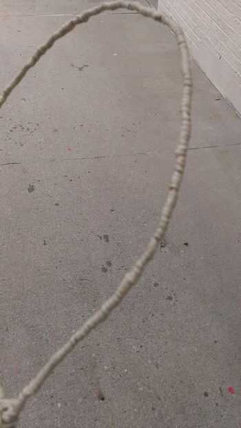 No es una técnica especial para envolver la cadena. Sólo amarra cerca de la base y comenzar a envolver el lazo de suspensión y ate otra vez cuando usted hace todo el bucle. De vez en cuando a través del proceso de envasado, sería un nudo cada pocas pulgadas para mantenerlo todo de desentrañar por accidente. Lo he hecho difundir hacia fuera como se muestra en una foto y y muy de cerca como se muestra en el otro. La difusión hacia fuera funciona bien, pero las obras estrechamente envueltas mejor.