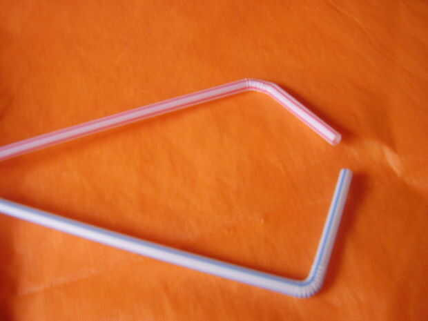 Aquí es cómo hacer una varita de niños burbuja con dos pajas de beber flexible.