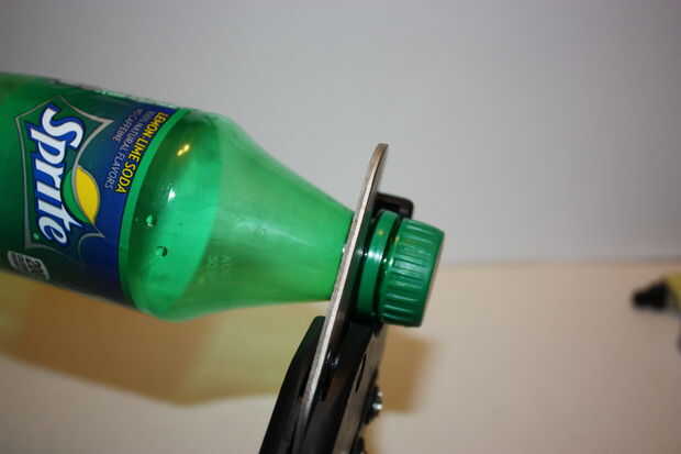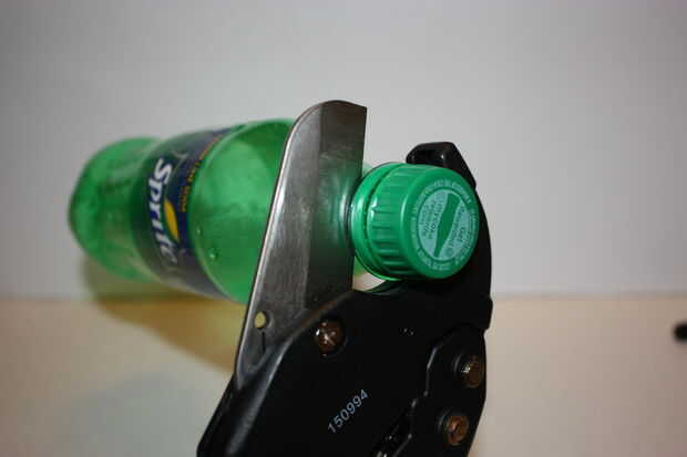 Utilice el cortatubos para cortar la parte superior de la botella. Sujete firmemente el cuerpo de la botella. El cortador de tubos va a cortar la parte superior pero no es completamente recta. Eso está bien para lo que vamos a hacer.
