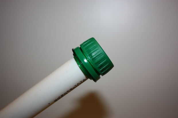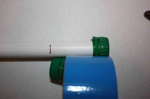 Hacer un ajuste seco de los casquillos y decidir donde quieres cortar. Quería envolver cinta alrededor mío así que me aseguré de incluir en mis medidas. Use un marcador para alinear el cortatubos con donde quieres cortar. Luego hacer otro ajuste seco sobre la pieza.