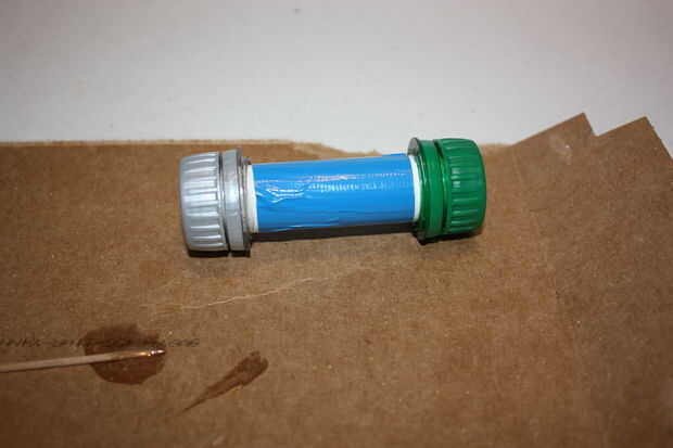 Usé un epoxi de 1 minuto para pegar las tapas de los extremos de los tubos. He mezclado con un palillo de dientes y difunda en los extremos de los tubos. Luego ponga la tapa en y girar para obtener tan siquiera una cobertura como sea posible. Asegúrese de que mover rápidamente.