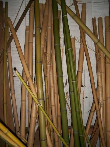 Secas de bambú más rápidos cuando está de pie erguido. Tengo un cobertizo grande que mantener mi bambú en mientras se seca. Tarda unos seis meses para secar. Esto es dependiente en el tiempo.