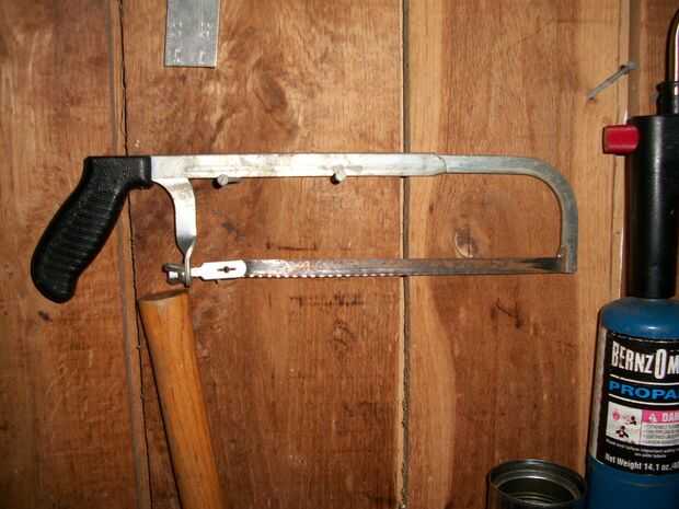 La cuchilla de corte de metales genera mucho humo, pero usted tendrá un corte limpio con ningunas astillas. Para mi tubo corté un pedazo con un nodo en cada extremo y sin ramas. He dejado alrededor de un cuarto de pulgada en cada extremo del nodo. Luego corté la parte superior del tubo de almacenamiento aproximadamente una pulgada desde el nodo.