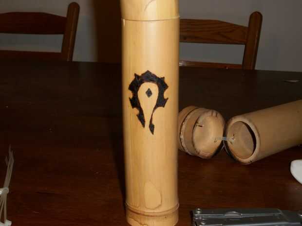 Para decorar el tubo puede utilizar una estufa de leña convencional o pintura. Pintura no permanecerá en el bien debido a la cera en el bambú. También puede aplicar este instructable sobre grabado de madera con luz del sol al bambú. Usé el sol técnica del grabado para grabar una imagen de un popular juego.
