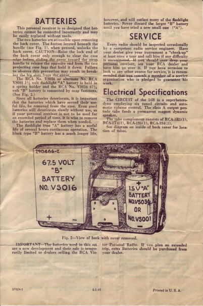 Tubo de la batería necesita fuente de alimentación de 2 "A" está para fillament, baja (1.5 o 3V) voltae corriente alta y "B" es para el anodo del tubo de corriente baja alta vlotage (45 o 67.5V). En esa época todos radios portátiles tienen dos baterías.