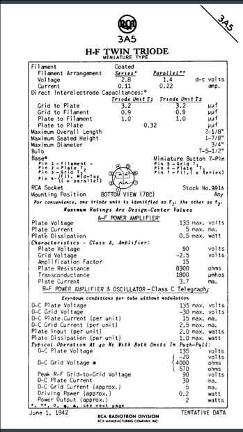 3a5 es un triodo gemelo para alta frecuencia