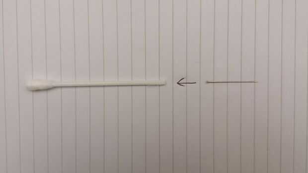 TUBO de DART de golpe la pistola con el extremo de la aguja (un bastoncillo de algodón, aguja, lápiz) (2 / 6 paso)