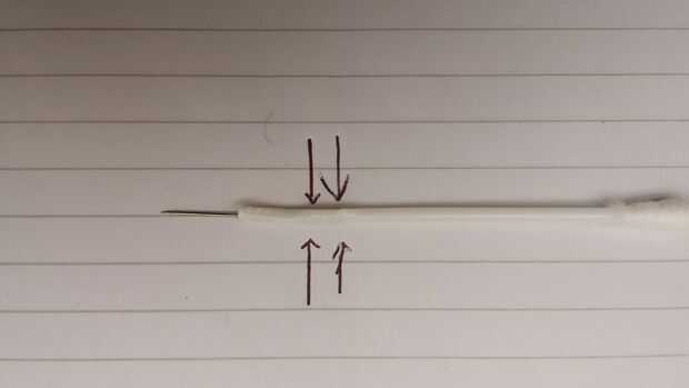TUBO de DART de golpe la pistola con el extremo de la aguja (un bastoncillo de algodón, aguja, lápiz) (3 / 6 paso)