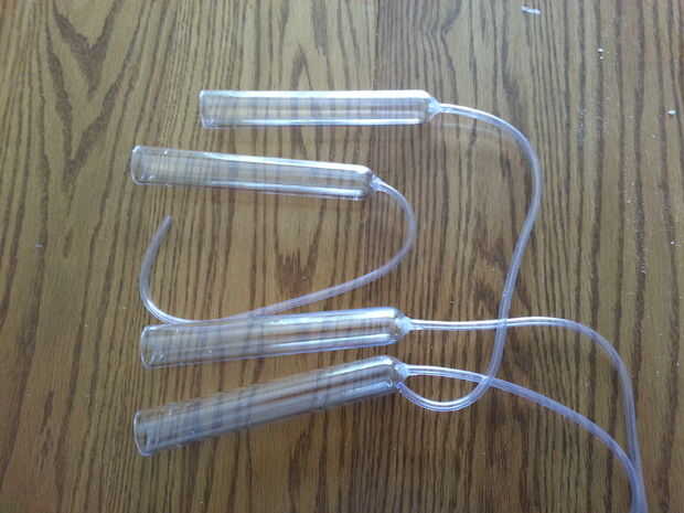 El tubo en el agujero que perforó en los tubos de ensayo, sello con un pequeño anillo de masilla de asiento.