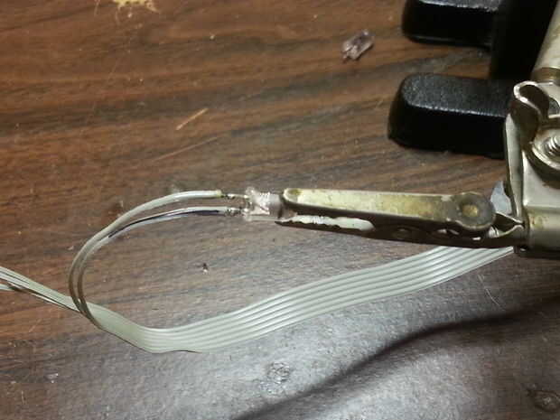 Utilizando la placa de circuito como su guía, suelde el cable hacia los lados positivos y negativos de la placa de circuito y a los lados positivos y negativos de los LED. Tenga cuidado no al tirón de los cables, si lo haces no funcionará. Repita esto para cada luz.