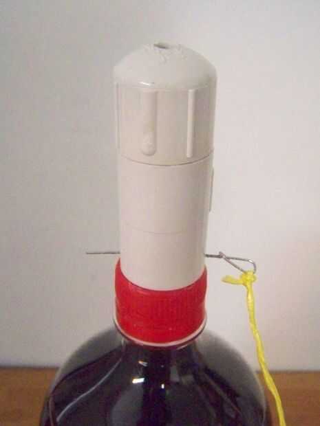 - El primero es el más clásico uno: perforar dos alineados 1/32" perpendicular a uno de los extremos de la 1/2" acoplamiento del tubo, en cada lado, donde luego se pondrá un clip de papel. El revés de este sistema es que la Coca-Cola, en el proceso, también se escapará de estos pequeños orificios.
