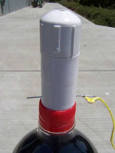 - Abrir la botella de Diet Coke y atornille cuidadosamente el tubo cargado geyser a él.