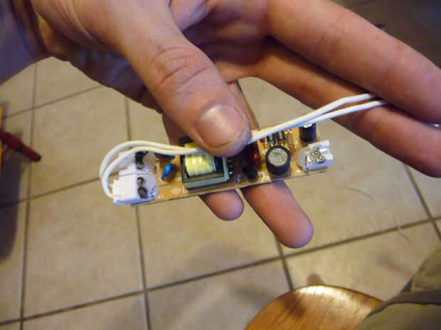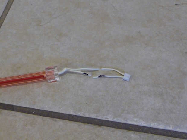 Los blancos cables aislados que se unen a cada CCFL son sobre un pie de largo. Mientras sólo podemos aplastar las CCFLs en el tubo de acrílico, cuando los cables blancos son Cruncheando abajo y cruzaron juntos la energía fluctúa, llamado salida. Tenemos que acortar, que los hará encajar más compacto, y no tienen problemas con brillo, parpadeo o simplemente apagando.