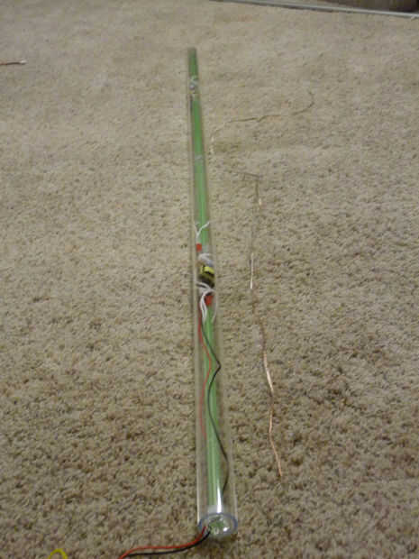 Conectar dos CCFLs a cada inversor y los ponen en el suelo al lado del tubo de acrílico con el inversor entre sus dos CCFLs. Esta manera, sabremos la longitud práctica, completa que nuestro tubo de acrílico debe ser. Calcular si utilizan tapas o tapones para su pieza final y corte por consiguiente con su sierra.