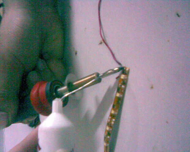 Cuando se seque la lámpara de pared, la luz del led tiene lista. Era el momento de poner los leds en los tubos de cada uno. He preferido para conectar la luz del led al conexión. Pegué los leds en los tubos y el taladro un agujero cada tubos de la parte posterior de la lámpara de pared. Así que conecté los cables de una manera invisible...