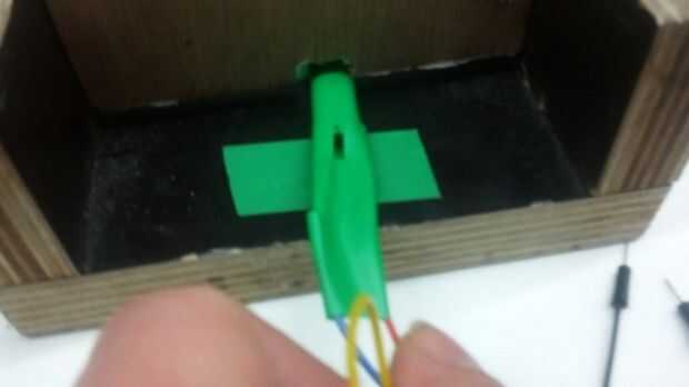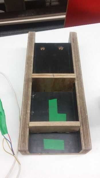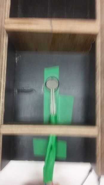 -Realizar un cuadro donde se adapta la placa de madera (sólo 1mm de espacio entre la caja y la placa se permite, si no la tapa no está apuntando hacia abajo) Asegúrese de que hay un pequeño hueco en el lado de la caja para la fuerza resistencia (FSR) de detección.