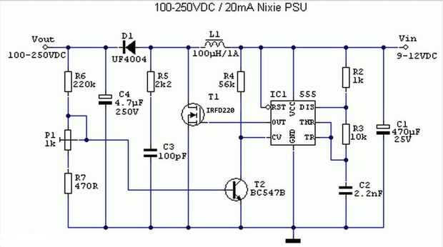 A continuación puede ver un esquema de una fuente de alimentación para el tubo. A esto convertirá, no controla el ancho de la sombra.