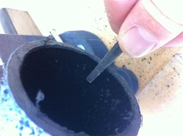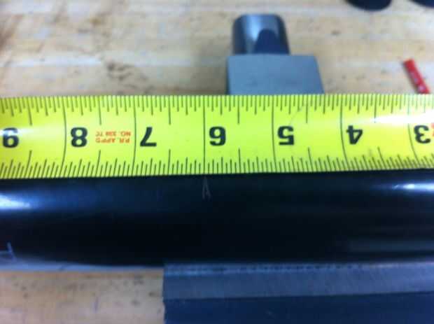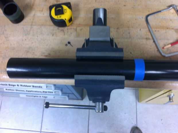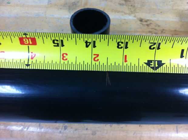 1. Corte el tubo en el 13 1/2", 6" y dos 1/4" piezas. Para obtener un corte recto de la tubería usé cinta envuelta alrededor. La cinta debe alinearse perfectamente cuando se envuelve directamente con ninguna arruga. Utilizar un papel de archivo y arena para suavizar los bordes. Al final del archivo se puede utilizar para quitar los trozos grandes.