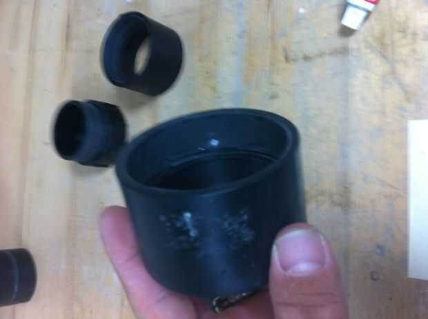 4. mezclar suficiente JB Weld para unir ambos momento a los acoplamientos y unirse a las dos tapas. Una vez que las piezas se unen entre sí apártelos por 24 horas.
