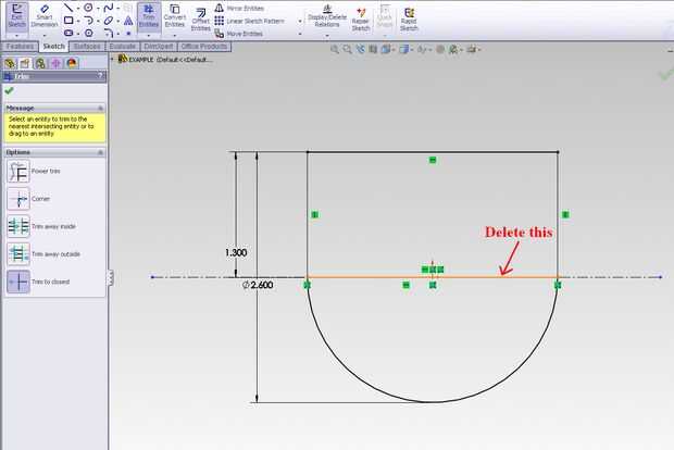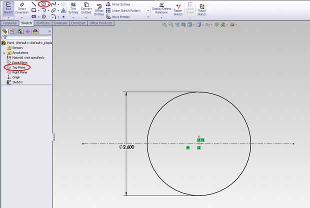 -Dibujo un círculo en el plano superior y Smart la dimensión a 2,600 pulgadas.