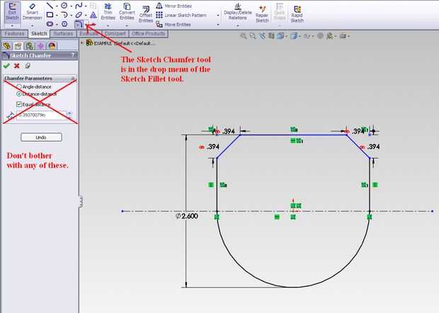 -A continuación, seleccione esbozo Chamfer y haga clic en ambos las esquinas superiores. No se molestan con la configuración y haga clic en Aceptar.
