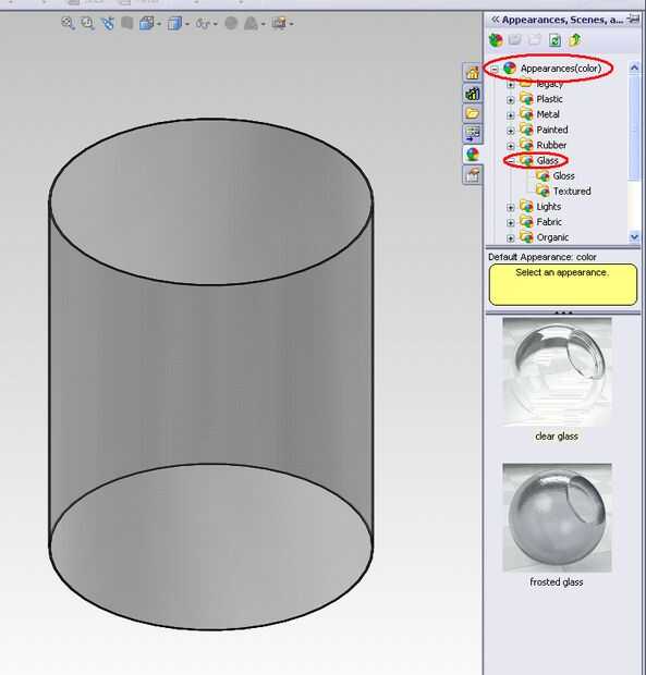 -Expandir el menú Appearance(color) y vaya a la carpeta de vidrio. Desde aquí, usted puede elegir cualquier vidrio textura te quiero (me quedé sólo con la textura claro).