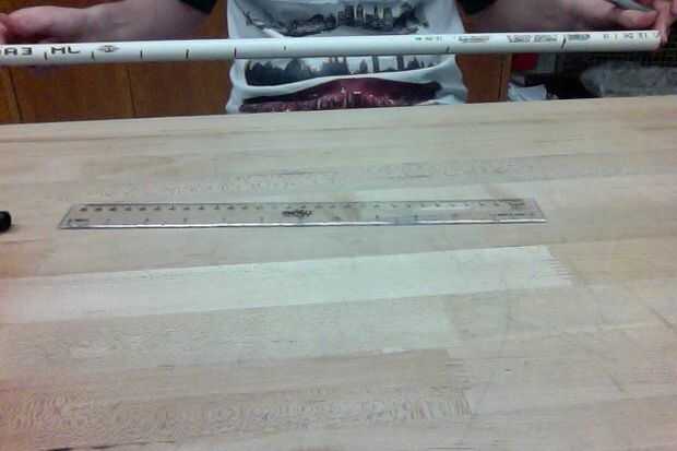 Seis líneas de 2", 12" línea, línea de 5" y una línea de 4" de la marca con un rotulador utilizando una regla