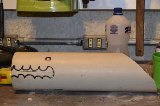 Fiz alguns estudos no próprio cano de PVC, usando um marcador permanente. Basicamente UE marquei os lugares onde poderia fazer os cortes ou furos. Nos primeiros brinquedos, como o peixe, fiz apenas alguns cortes e o brinquedo já estava pronto.