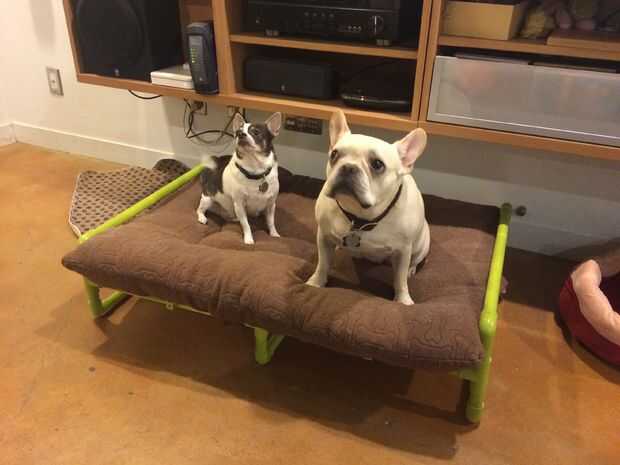 Cuando llegamos nuestro perro Myah, conseguimos una de las camas de perro peluche típicos de una tienda local. A ella le gusta la cama bien pero me encontré moviendo la cama de la planta a la planta baja varias veces al día. Sabía que podía solo dejo