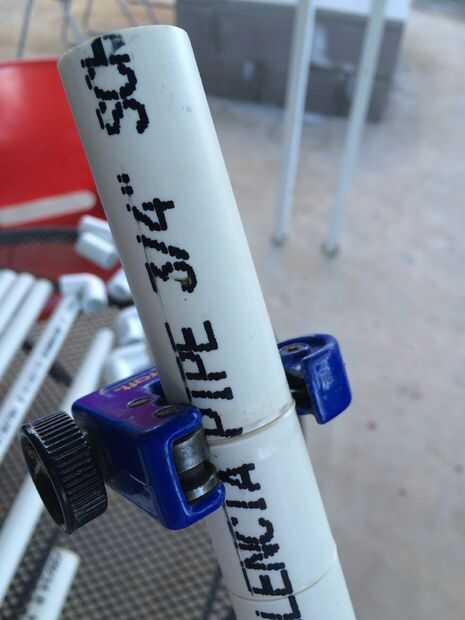 Se necesita cortar el PVC para algunas longitudes específicas. Los extremos de la cama se realizan conectando una 24" longitud de la tubería a dos giros de 90 grados. Saliendo de 90 grados es una pieza aproximadamente 3 ½" largo. Usted necesitará cortar 8 piezas a esta longitud y 2 piezas a sólo un poco más largo de 4". Las piezas un poco más largas se utilizará para el uso medio de la cama.
