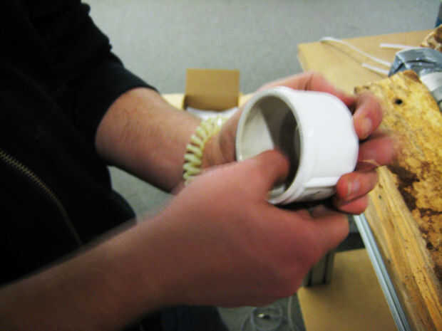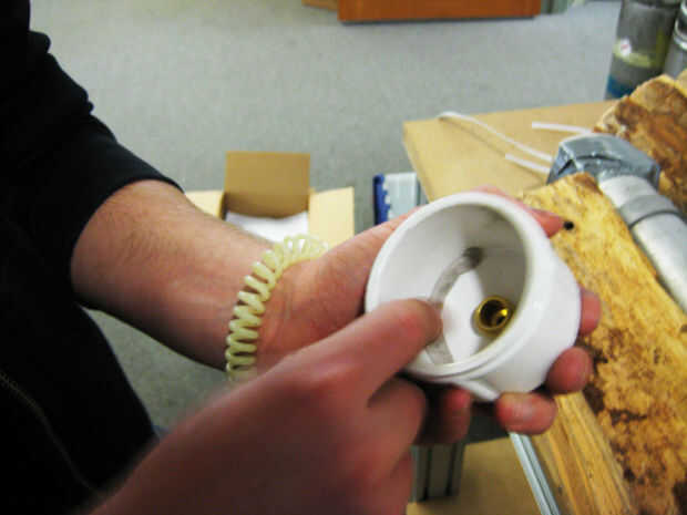 Moosh un gumball tamaño gota de masilla epoxi una y otra vez hasta que el color se suaviza. Después de todo, se homogeneiza, rodar en una serpiente y pone en la esquina interna de su tapa de PVC. Si has jugado tus cartas, debe caber todo el camino alrededor, y presionando sobre el extremo del tubo se crear un bonito, incluso el sello. Si no juegas tus cartas, como yo, tendrás que sellar cosas otra vez con una tira de sellador de silicona alrededor de lo labio de la tapa de extremo.