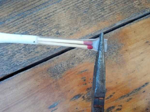 Cortar paja por encima de los partidos dejando suficiente espacio para agarrar con pinzas y sellar el extremo como antes.