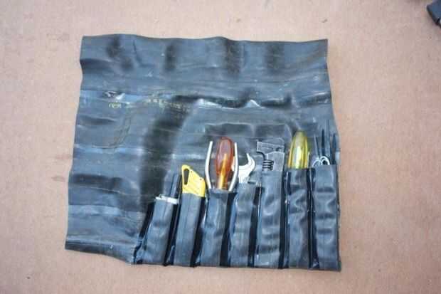 Para cerrar el rollo tienes que voltear la parte superior del respaldo sobre y comenzar a rodar en el lado de las herramientas para que el borde no bolsillos voluntad la en el exterior.