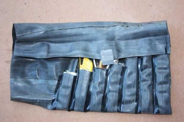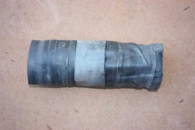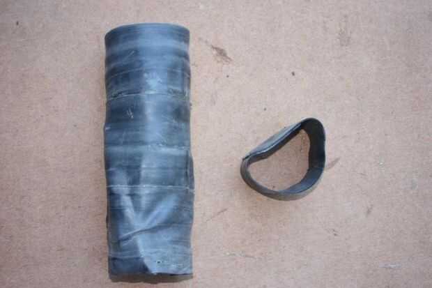 La última cosa a hacer es la correa que sostiene el rollo de desenrollarse. Mi correa fue hecho de un tubo interno de coches porque no quedan cualquier tubos de bicicleta.