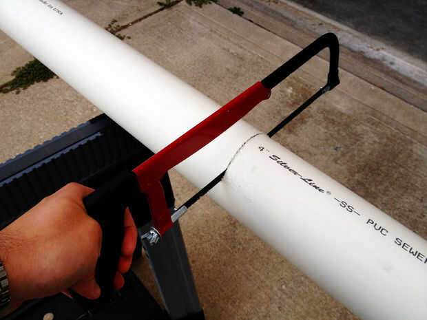 Después de recibir el corte de tubo ya casi estamos listos. Hablar de fácil! A continuación, perfore un agujero lo suficientemente grande como para caber en el extremo de sus tornillos o clavos. Estas se utilizarán para montar el tubo. Usé 1/2" broca.