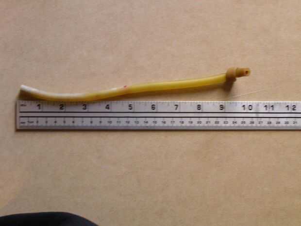 Cortar un trozo de tubería de 1/4 de pulgada a 12inches. En un extremo Coloque un sello de la Junta y un nudo en el tubo como cerca del extremo como sea posible. Desea que el sello de la Junta en el nudo. No tienes que hacer esto pero tengo un tiempo duro con esta fuga.