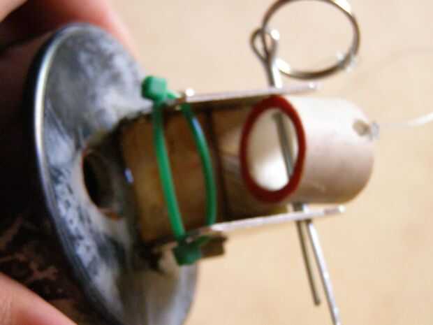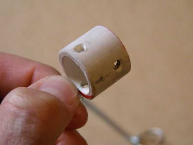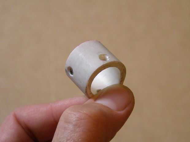Después de que el epoxi había fijado desea perforar un pequeño agujero para una atadura y el pasador en los titulares. Se desea que los agujeros del lazo zip por encima de la altura de la tubería. En los orificios para el pasador, el gatillo entre los titulares y perfore un agujero de sólo lo suficientemente grande como para que el pasador a través de las y desencadenar en la mayor parte del gatillo. También puede hacer un agujero para el cable en el gatillo en este punto.