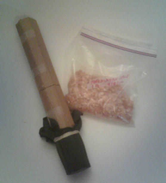 No pude encontrar alguna evidencia que utilizando un tubo de sal nunca realmente ha lastimado a nadie. Yo quería probarlo, pero no por cuarenta dólares. Tengo una bolsa de una libra de "Himilayan cristales de la sal" por cinco dólares en la tienda de discos independiente local centro de la ciudad. Entonces construí un aparato de inhalación de aire salado. (ver fotos)