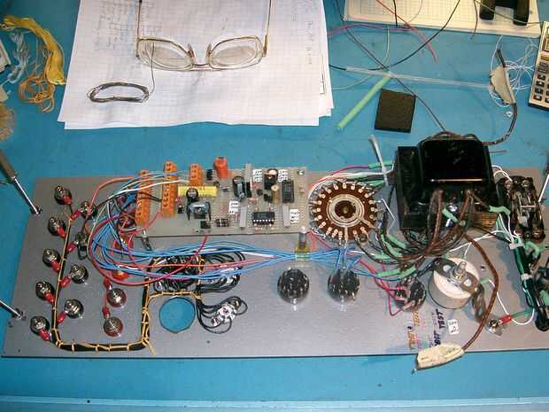 La Junta utiliza terminales de tornillo para conectar los cables para que pude quitar la Junta para la construcción y los cambios más después de probar las piezas. Lo pongo en soportes con bisagras en un extremo y los rectos en el otro extremo por lo que me pude levantar para tener acceso al otro lado para mediciones rápidas o cambios sin necesidad de desconectar cables 1 millón.