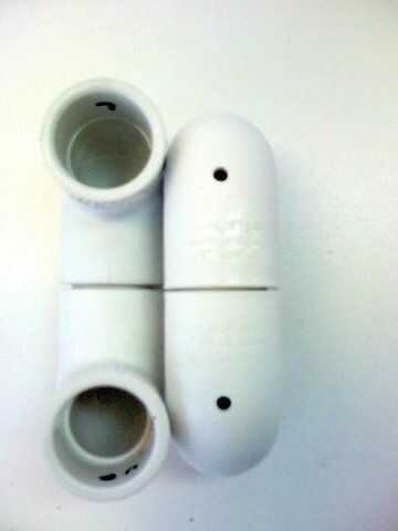 Usando un 1/8" poco perforar a través de las"espaldas"de 4 90o conectores como cerca el"interior"de los conectores como sea posible. Vea la ilustración de abajo. Si pones a través del centro del tubo verás los tornillos después de que usted fije a la pared. Poner en el "interior" ellos como cerca de la parte plana como sea posible, consigue ocultar el tornillo cuando fije a la pared.
