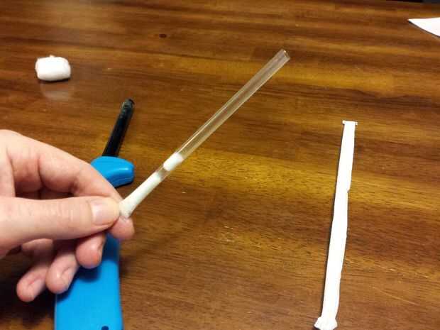 Nota: Un separador de bolas de algodón es bastante efectivo. Anteriormente trabajé en un laboratorio donde queremos medio llenar tubos de ensayo con agua y tapa con una bola de algodón. Ponen de su lado, y para mi sorpresa, no tener fugas. La bola de algodón compactado mantenga el agua salga.