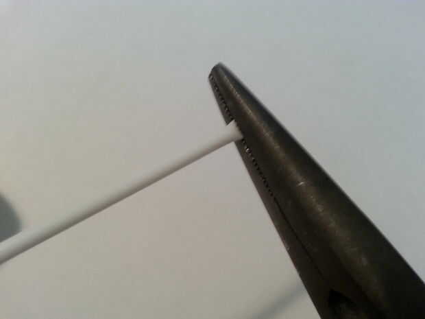 calentar un extremo de la q-Tip y rápidamente lo apriete con los alicates